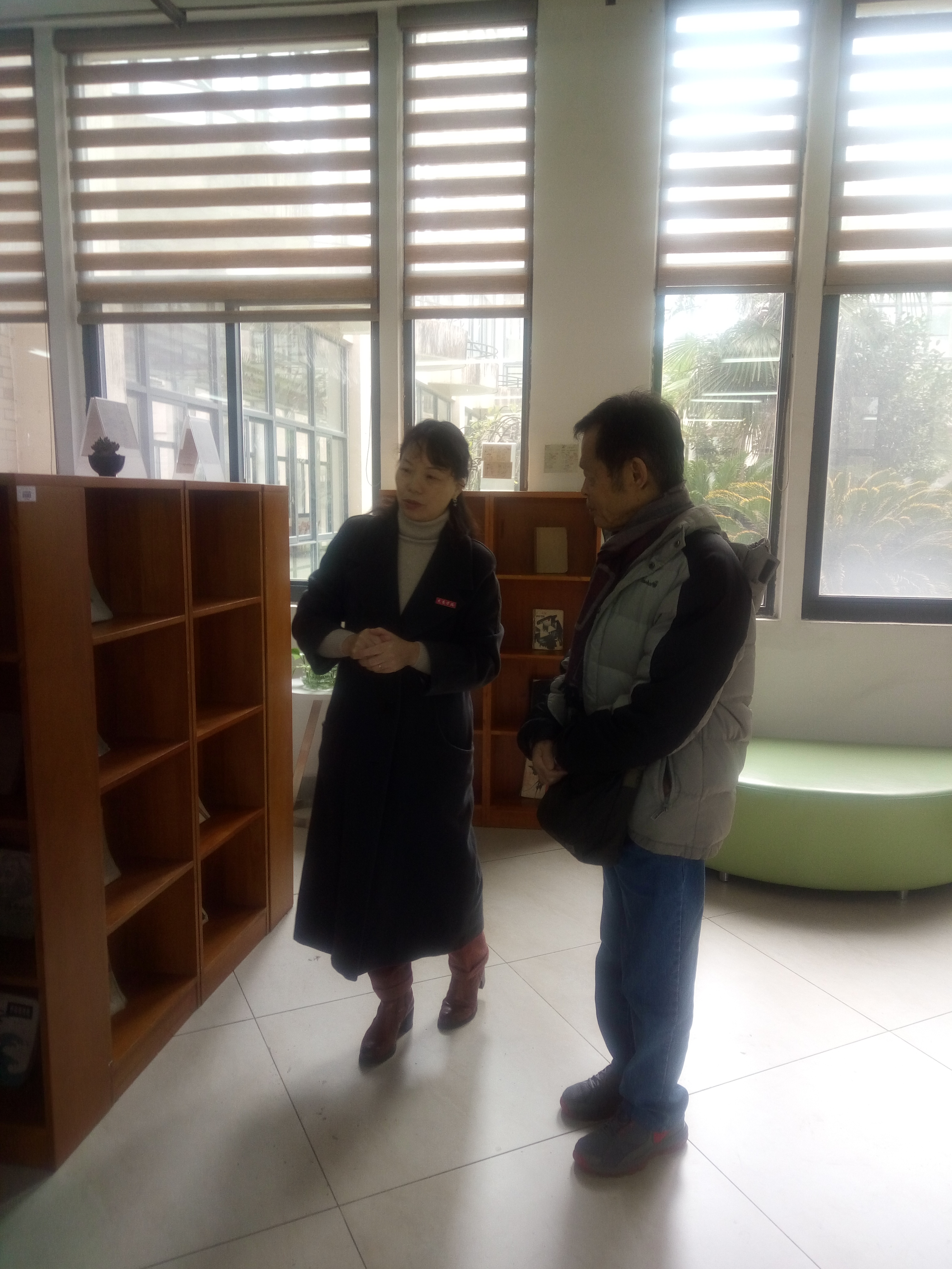 12月17日上午,香港著名作家陶然在本校人文与教师教育学院院长廖斌教授的陪同下,到逸夫图书馆参观。徐俐华馆长向作家介绍了图书馆概况、馆藏资源、管理理念、服务创新、闽北文库和校庆专题展览,陶然饶有兴致地走访了展区、书库、阅览区域,对图书馆的文化氛围和阅览环境表示称赞。